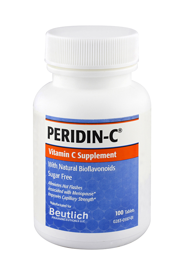 PERIDIN-C® Vitamin C Supplement, a unique combination of bioflavonoids and ascorbic acid, has been shown effective in relieving hot flashes.* In one clinical study, 94 menopausal women with hot flashes were given 6 PERIDIN-C tablets daily. After one month, symptoms of hot flashes were completely relieved in 53 percent and reduced in 34 percent of the women.1